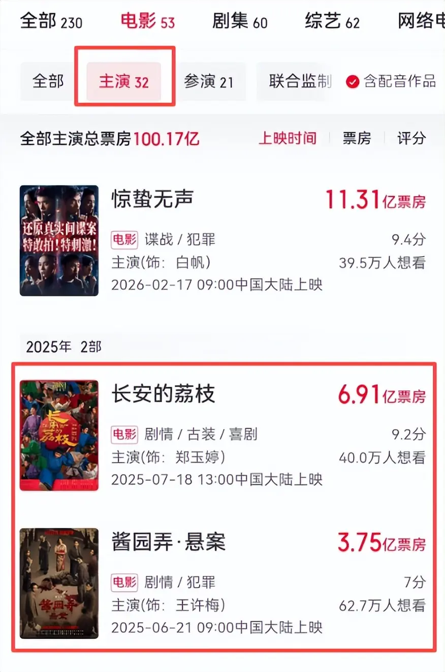 不知不觉中,主演票房竟然都已经破百亿,着实让人惊喜。