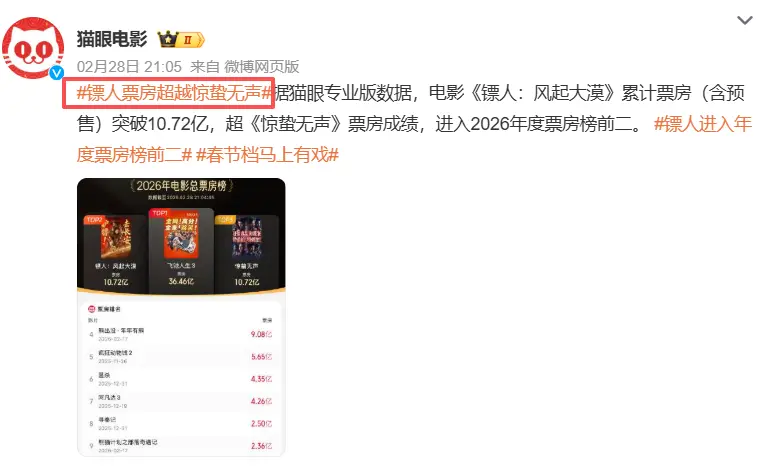 不过从如今的局势来看,《镖人》后劲似乎愈发明显,如今已经突出重围超越了《惊蛰无声》。